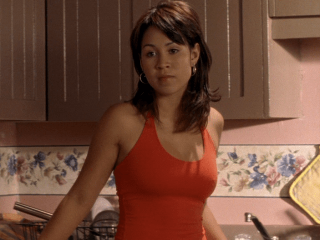 Why do all the adults wear 70s-inspired clothes? Huge collars and bell sleeves? Does the wardrobe dept do that on purpose to show they’re from a different generation? Anyway, this rude receptionist for Bernice wears a terribly uncomfortably looking tweed blazer over a collar that reaches the ends of her shoulders. Gross.
