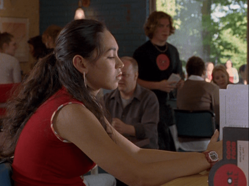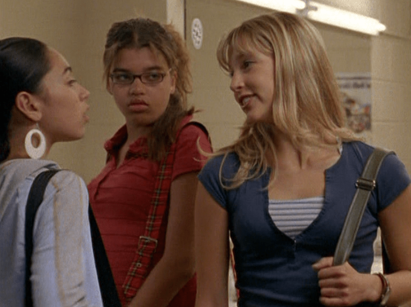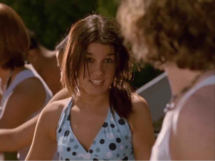 I’m SQUEALING internally because this is our FIRST appearance of Darcy!! I can’t believe I’m typing out her name for a blog post! Darcy is one of my favorite characters, let’s giver her a round of applause! She has natural brown hair, a polka-dot swimsuit, and low-rise jeans. The polka dots are an often-overlooked trend of the 2000s. Multiple sizes and colors like that. They’d be on all kinds of stuff, especially dresses. I’m not really a fan of different-sized polka dots. I’ve just realized.