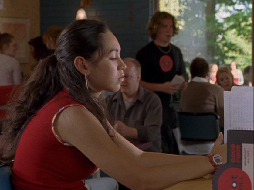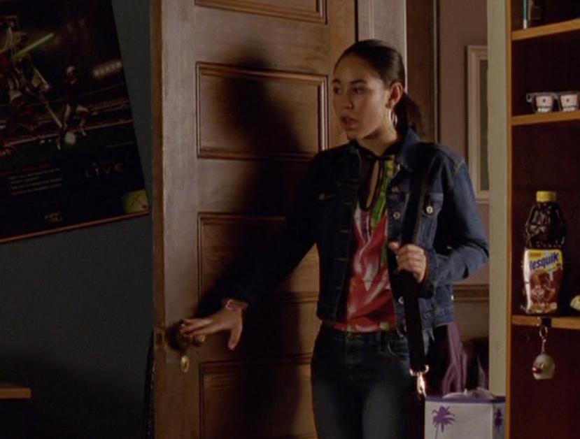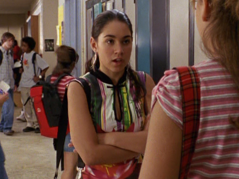 Well, Manny is stealing boyfriends again. But this time she’s picked a really strange target – Spinner?! Ew. First she’s all seductive in the halls wearing those dangerously low-ride jeans. And this yellow shirt with green graphics – I’m not sure what exactly is on this shirt, but in my mind it’s always a Ninja Turtles shirt. Next, she’s at the car wash in a pink string bikini with jean shorts and a blue cap. And more proof that it’s not actually warm enough for this is that she puts on a zip up hoodie. lol. Lastly, Manny looks most romantic in red, I think. She’s here at The Dot in a red, sleeveless, collared shirt and hoop earrings.