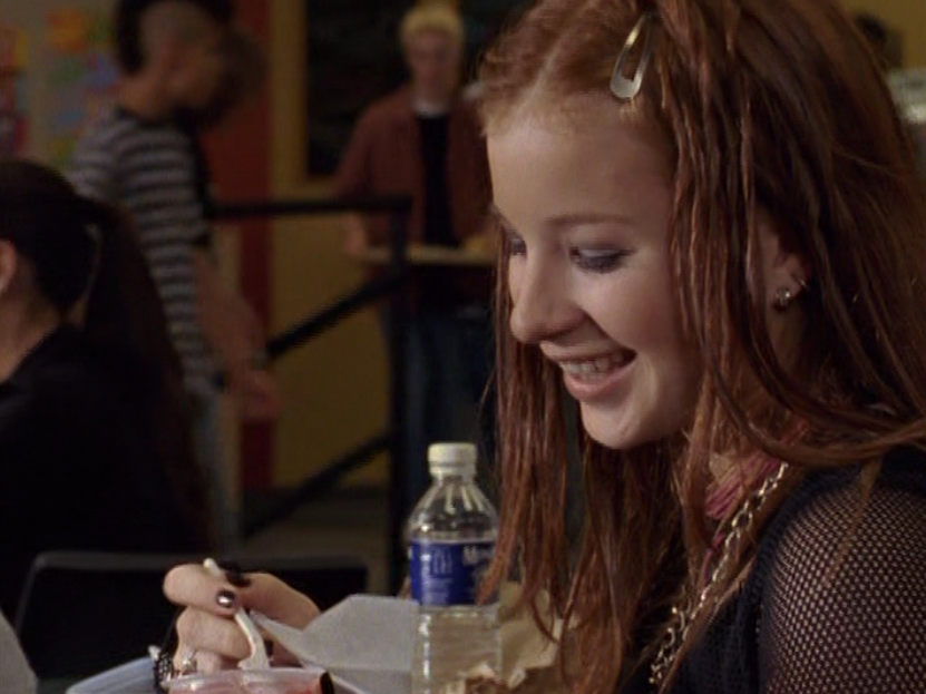I abhor Ashley’s wedding outfit. It’s a stain my memory. However, it is a perfect representation of the cringe choices we’d make as teenagers, especially our outfits to very important events. Why, just this weekend my teenage cousin attended a family wedding in a shiny cocktail dress, but wore Doc Martens and a flannel shirt over it. Anyway, Ashley is wearing this navy tee and leather bracelet. She’s GOT to have some kind of a spray tan. She just looks so orange to me. Obviously people can do what they want, I’m just not a fan of fake tans. However, please allow me to lovingly trash Ashley’s wedding outfit with all due respect. This hairstyle is the worst and I’m SURE this was not Melissa McIntyre’s idea. lol. This is like, hair twisted into cornrows with pieces of the front left out to “frame the face”. This is already a quite dated hairstyle by 2004, wouldn’t you say? It’s like something Terri would wear for PMS. Ash is also wearing a necklace that looks like something you come back with from a Spring Break trip to the beach in 5th grade to go with your airbrushed t-shirt. The dress is a grey sweetheart cocktail dress with black lacy trim. I just don’t like the contrast of the cool-toned grey with the orange tan. Oh and that dropped waist is so bad. I’m not a fan of dropped waist, why do we want to elongate our torsos and shorten our legs? The cringe of this outfit is right on up there with the cringe of Craig’s behavior at the wedding (which we can’t blame him for but it was still awful). Sorry for the overuse of the very mean word “cringe”. Well, that’s all I have to say about the wedding outfit. I HAD to include this sick cell phone that lights up in different colors when it rings. LOVE it. And finally, Ash joins Craig in the hospital wearing a reddit jean jacket, low rise jeans, and grommet belt. Those pants were so dangerous. We were all 2 millimeters away from showing our coin slots constantly.
