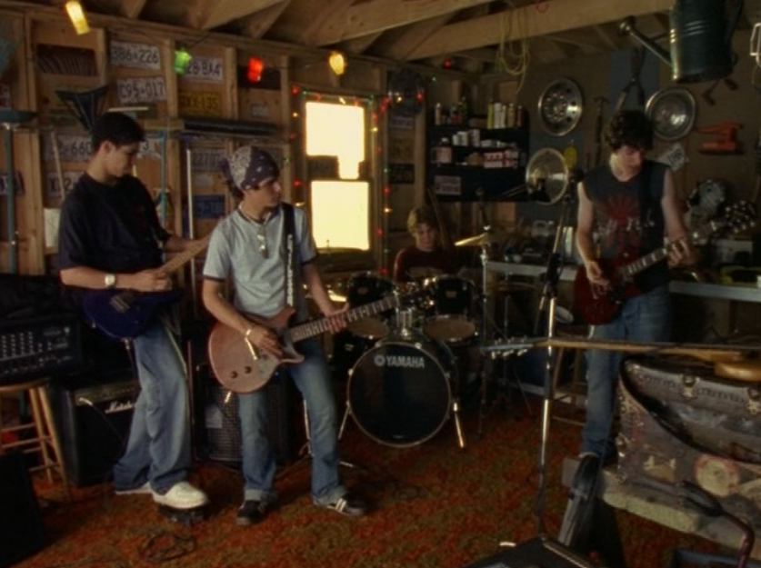 So the next day, she’s wearing a huge hoodie walking to school, only to reveal a sexy velour tracksuit underneath. Not just any track suit – it’s a tube top complete with low-rise bottoms, in a fresh baby blue. She lets her hair down and immediately everyone is gawking. Later at the mall, we see the full fit which includes a matching jacket and bucket hat and white shoes. I love the look of “excessive color” as my high school called it. My high school banned “excessive color” because it was a “gang symbol”. Oh yeah, and her chain necklace says “VEGAS”. But anyway, now Manny decides she needs a thong, by holding it up to her face.