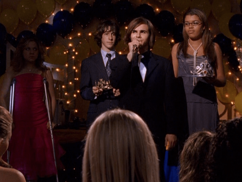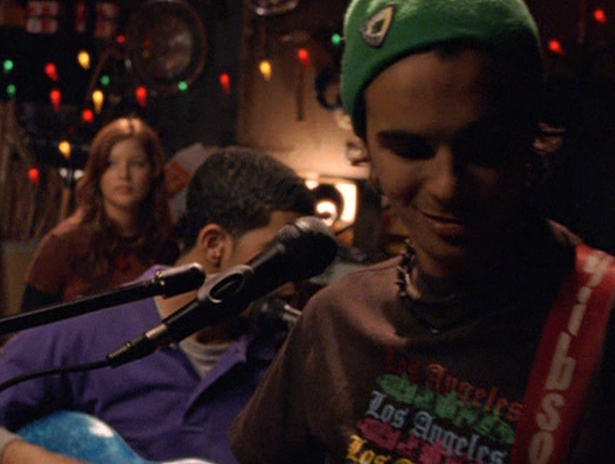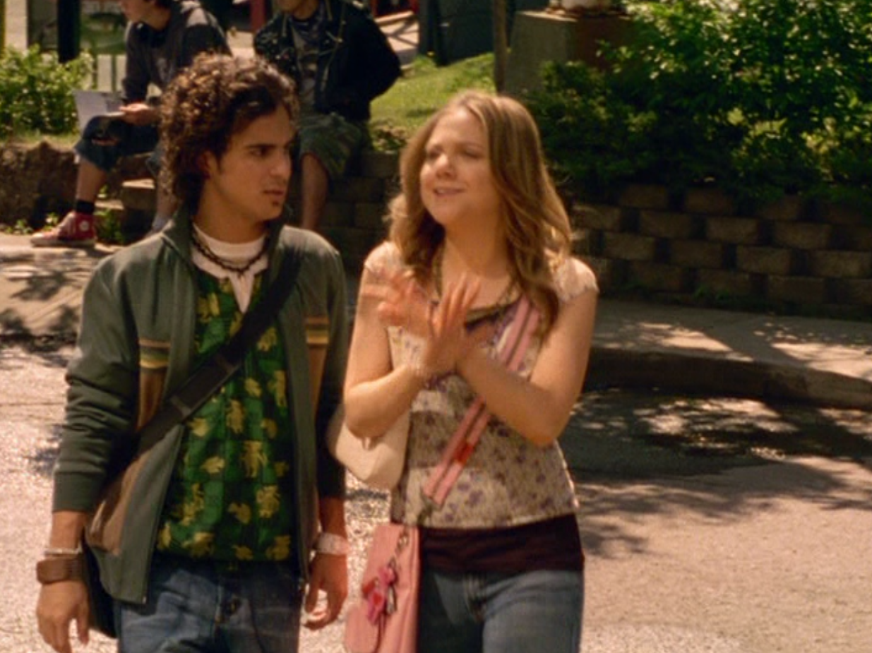 Marco’s brief little friendship with Manny is cute. It’s nice to see her really finding her own way, independent of Emma. Now she’s even chilling with upperclassmen. However, Marco is forced to make a choice, and ultimately Paige is more important to him. Awkward. He’s first sporting curly hair and a white button down over a blue tank. Then he’s in a bandanna and a long-sleeve tee. For the dance, his hair is straight and he wears all black everything except for a white tie. Hope his date choice (Paige) was worth it.