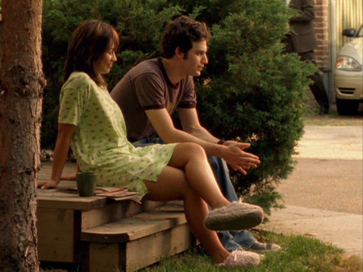 It’s pretty interesting that Manny was made to look so different for her role in the film. They put her in yellow for the dance, which she never wears. Her hair and makeup look different. And finally she wears a graphic tank and pink miniskirt. And apparently now she’s becoming a star, known as “that actress from the Kevin Smith movie”.