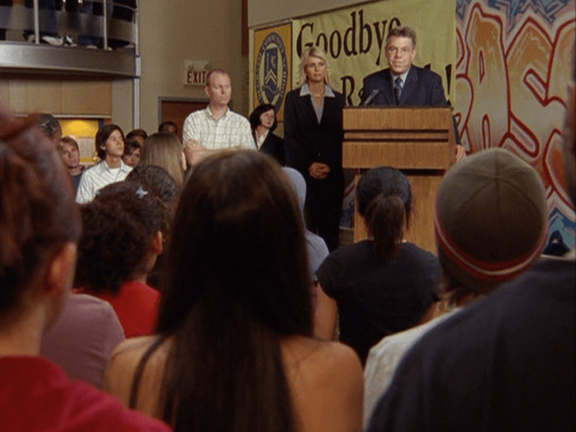 Wow… I wasn’t anticipating doing such a heavy post here and now. These are Raditch’s last moments at Degrassi. And unfortunately he kind of ducks out of the school and the show in a very anticlimactic way. But we have to acknowledge that this is the end of an era. Raditch has been with us since 1987. This is the beginning of the show phasing out the original characters. All things must come to an end. But my heart is tied so strongly to the original series, to our roots, to everyone and everything that inspired all of this. And although this TNG Raditch was not necessarily a “good person”, I believe that in DJH, he was. And we must give him credit there. It’s sad and a shame to see him not only leave the school, but leave on kind of bad terms. Sure, one could say his character brought it on himself. But it’s still bittersweet. He leaves… Caitlin leaves.. Joey leaves… Spike leaves… we don’t get any more surprise visits from anyone… and the kids forget there was ever an OG crew. Oh, except Snake. Snake stays forever.