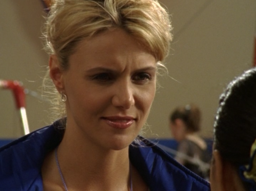 Hot Sauce is dressed “sexy casual” once again coaching another sport for one episode. She’s got her hair up to demonstrate how relaxed she can be, and wears an admittedly awesome blue and gold windsuit.