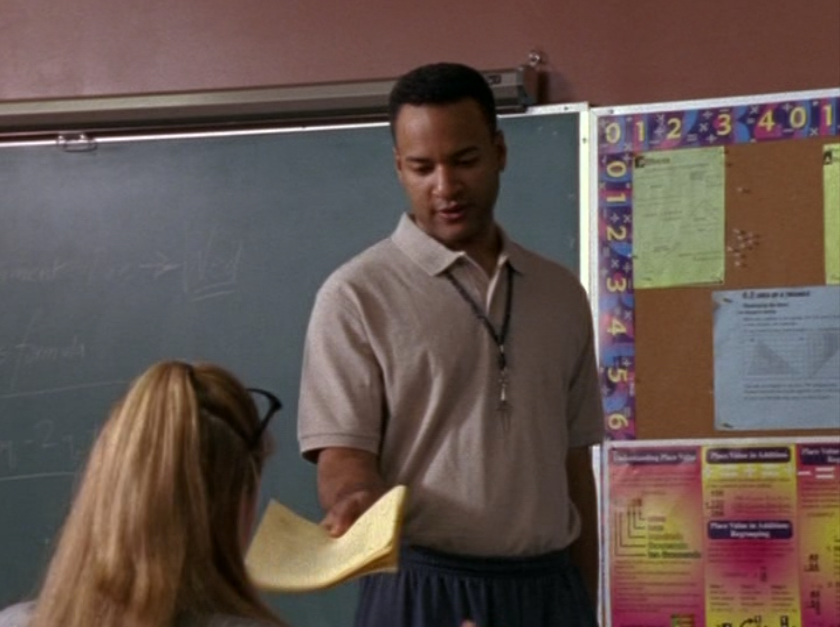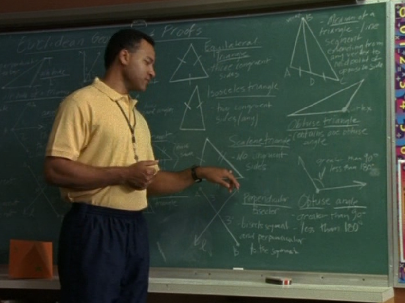 We’ve arrived at one of the heavier episodes now. Ellie’s episode. First we see Armstrong in a greige polo, sweatpants, and of course a whistle around his neck in case he needs it during the polynomials lesson.