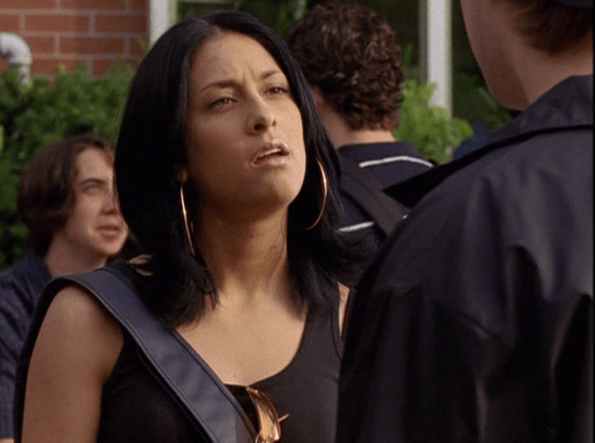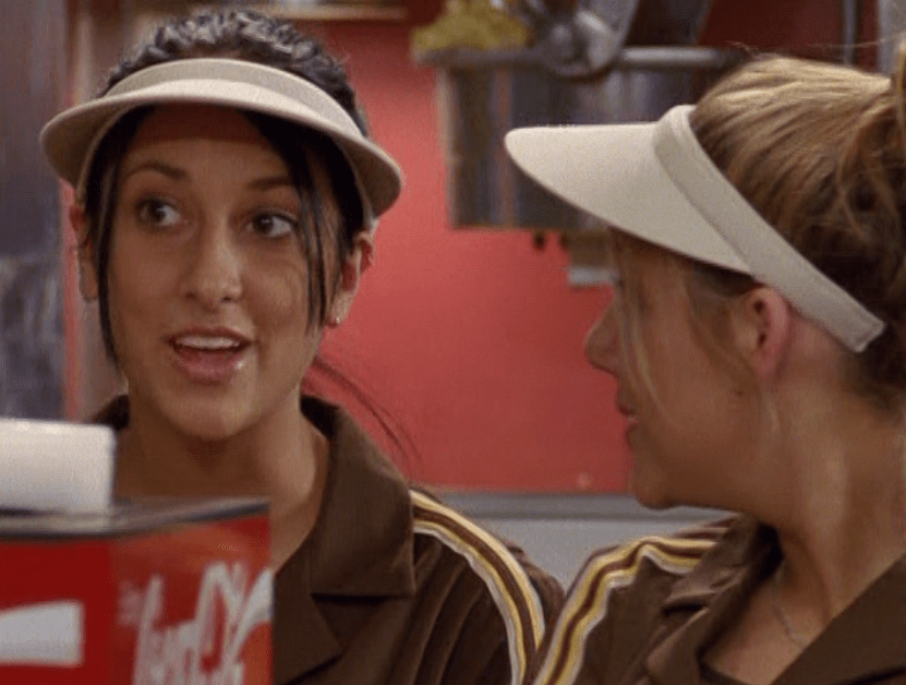 New episode starts now, and what a morbid title we have here! I know these episode titles all come from 80s songs, but I’m not sure if I know this one or not. Anyway, we kick things off with some nice scenes of Alex and Paige at the movie theatre concession stand. Ah, that brown polyester! Then we move on to her regular clothes. Simplistic as it is, I always adore her style. That short haircut, the huge hoops, cross-body bag, tank tops with bra straps hanging out, and cool shades. Always an icon!