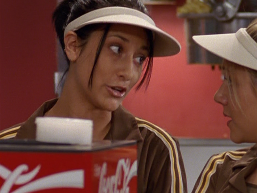 New episode starts now, and what a morbid title we have here! I know these episode titles all come from 80s songs, but I’m not sure if I know this one or not. Anyway, we kick things off with some nice scenes of Alex and Paige at the movie theatre concession stand. Ah, that brown polyester! Then we move on to her regular clothes. Simplistic as it is, I always adore her style. That short haircut, the huge hoops, cross-body bag, tank tops with bra straps hanging out, and cool shades. Always an icon!