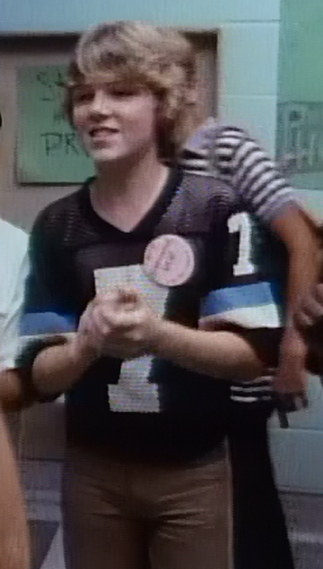 Wheels is barely recognizable preceding his signature mullet, button-down shirt, tight light wash jeans, white tennies, and glasses.