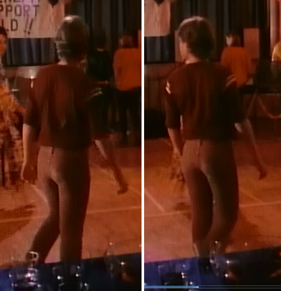 However, in Kiss Me Steph, he is wearing what looks to be super tight corduroys, which take all the attention away from his sporty jersey.