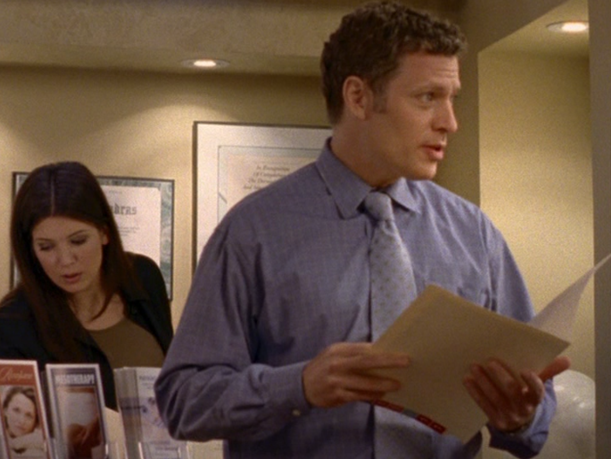 Wow, I can’t believe we’ve arrived at Season 5! It starts off, in my opinion, pretty dark. Though it’s a bit over-the-top and cheesily depicted in this episode, the beauty standards and pressures of the 2000s were incredibly toxic. Anyway, so we do start off my Venus coverage with the plastic surgeon, Dr. Andras, wearing blue on blue. But just stay tuned for the more interesting content from this episode.