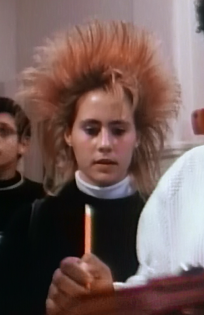 You might know Louella as the janitor. IRL she is also one of the script writers of the show! After a while, you can tell which episodes she wrote because she has a unique dialogue-writing style. But anyway, there’s not much to see here, she’s wearing her janitor uniform, which you may notice has a bigger pointier collar than uniforms we see today. Her fluffy bed-hair is also noteworthy. I presume this style is a bit on the unique side in 1988. (The year I was born!)