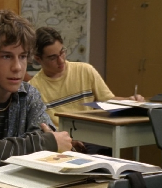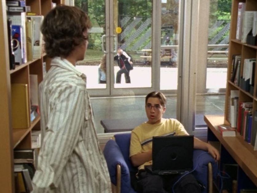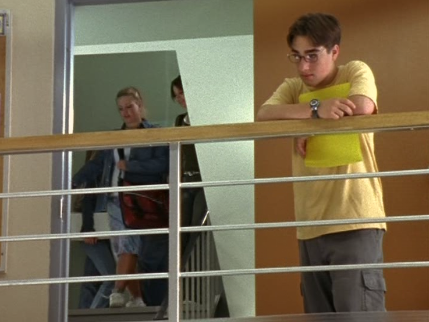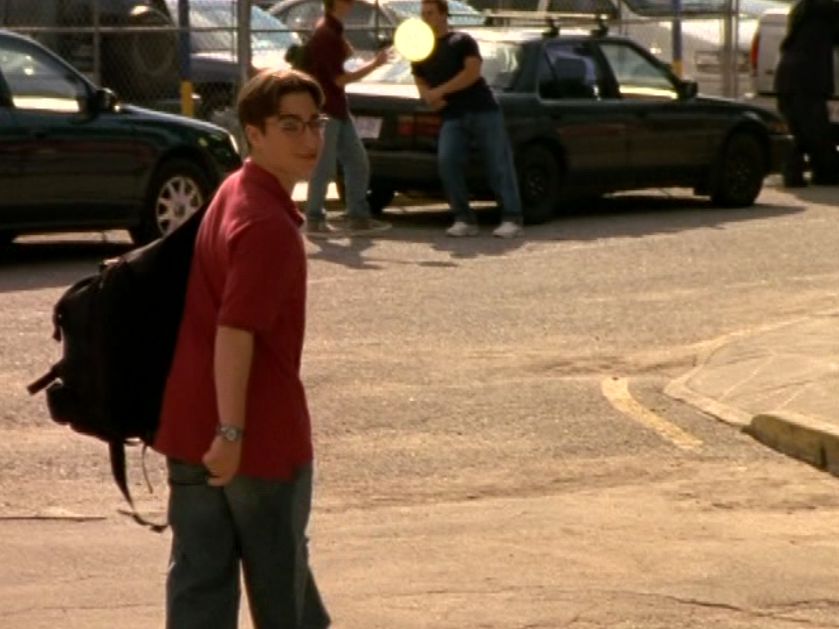 First, Toby is of course swimming in a t-shirt. No shame of course but come on… does anyone actually WANT to wear a t-shirt over their bathing suit? He also has these sunglasses that look like the slick Oakleys we all coveted at the time. I myself had some Foakleys I bought off a dude on the street in Washington DC. Whatever it takes, right? Next, Toby is wearing skate shoes to gym, which is… a choice. Next he is JT’s penis assistant in this red tee, baggy pants, and the skate shoes. I just used to CRAVE those flat soles and thick tongues, man. I loved skate shoes. I unfortunately wore them an undeserving amount considering how little I skateboarded.