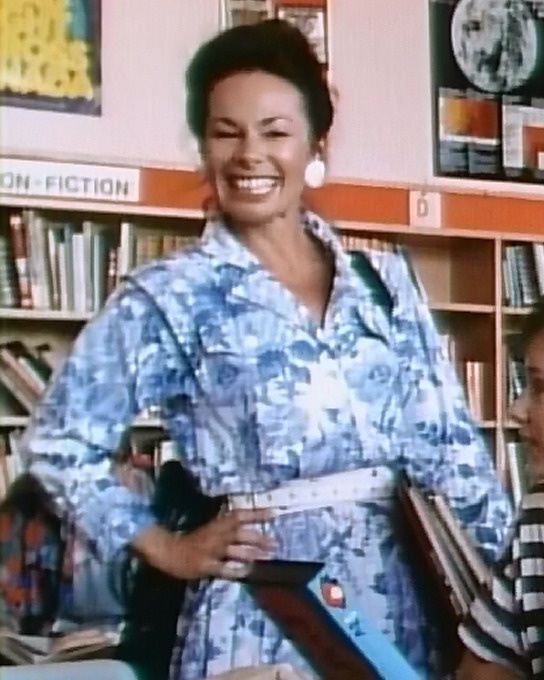 Oh yay! The dress Ms. Avery wore to the big dance in season 1! It looks very beauty-queen with this updo and white accessories.