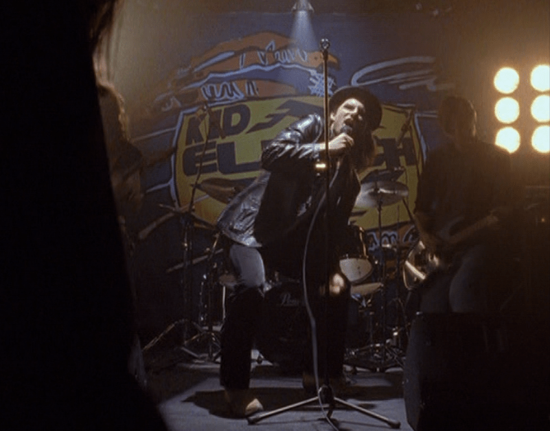 Marco wears basically a Canadian tuxedo featuring his flared jeans and a ringer tee peeping out from under his jacket. Then we see him in his all-black “disguise”, and lastly coming home from the concert in his Kid gear and some kind of knit baseball cap.