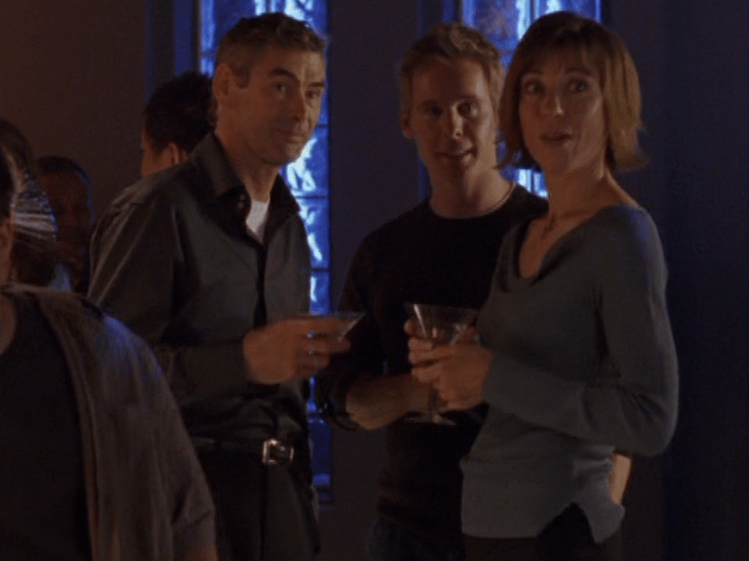 Even though this episode is for good ol’ Robert, we hardly see him because everyone else is making this about themselves. Ain’t that how weddings are. He is briefly seen here at – isn’t it a club they’re doing this at? – wearing freakin business attire except he unbuttoned the top few buttons to, look more casual I guess.